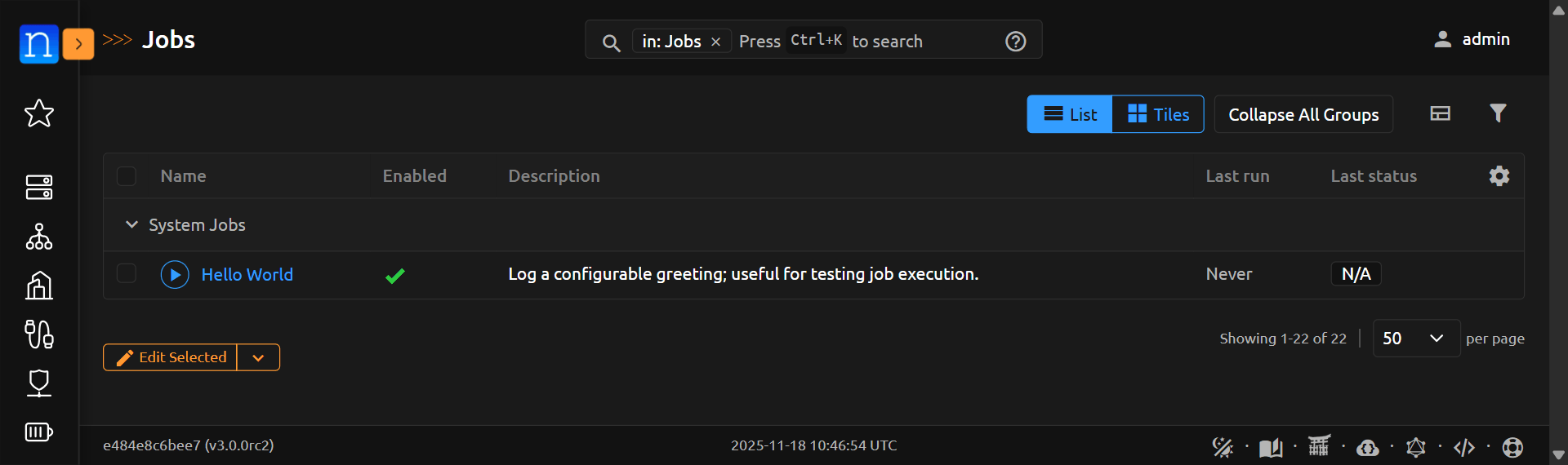 nautobot-server post_upgradeso Nautobot discovers the new Job and creates its database record. - In the UI, navigate to Jobs → "Examples" → "Hello World", click Edit Job, then under the Job section, select the Enabled checkbox. Scroll down and Update the job.