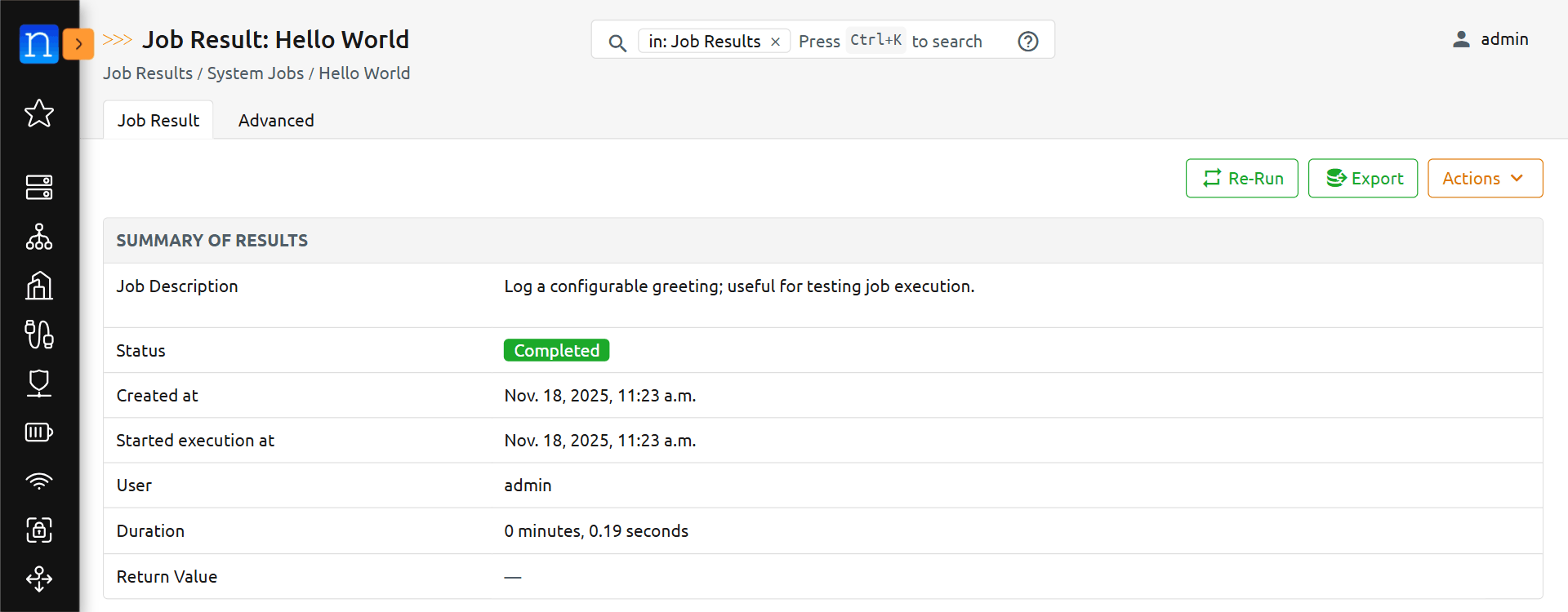 - Run Job Now. You'll see the log entry appear almost instantly.