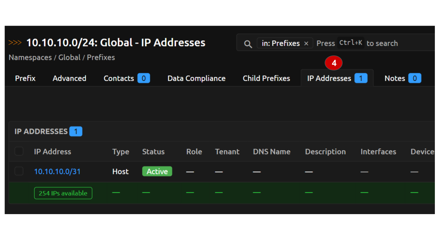 - This will take you back to the Interfaces page for the Device, where you will see the assignment shown under the