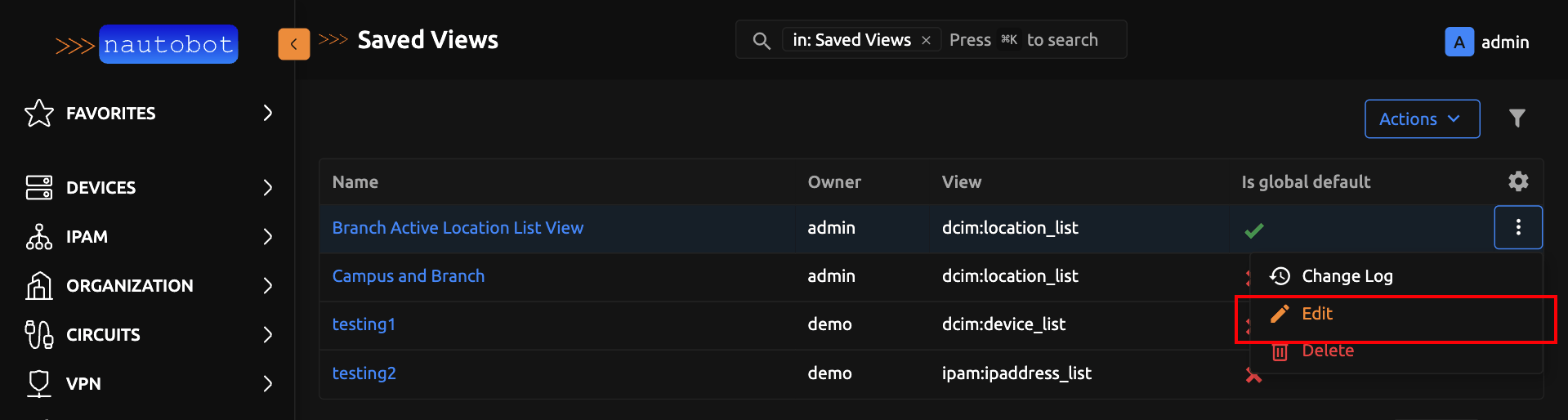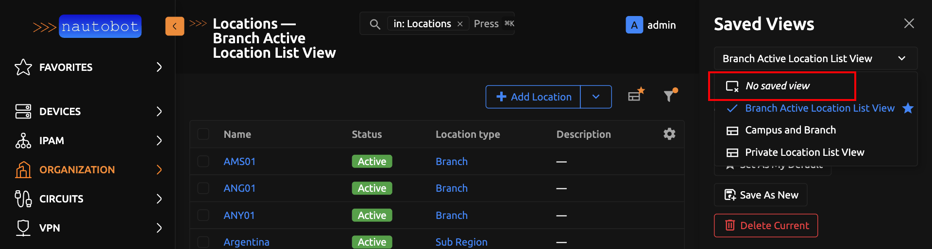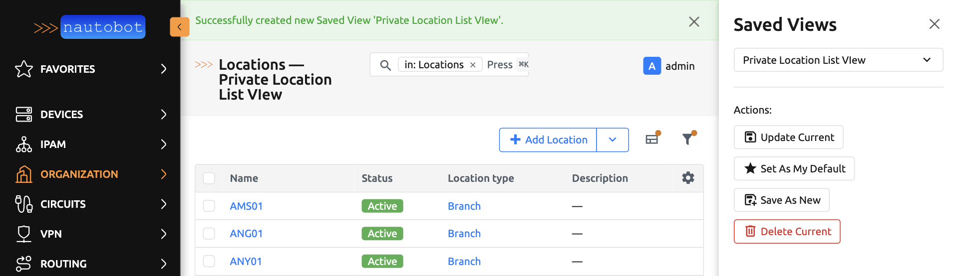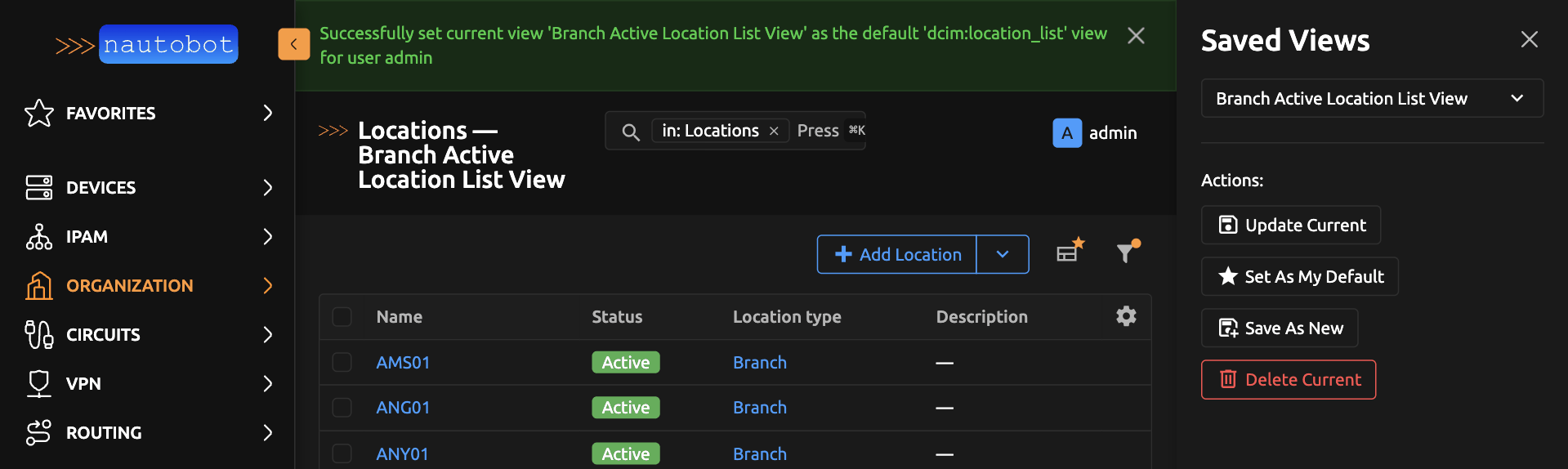 Below is a user guide on how to create, update, save and use Saved Views in Nautobot.
