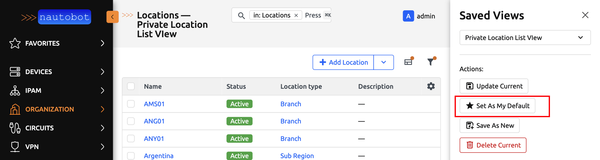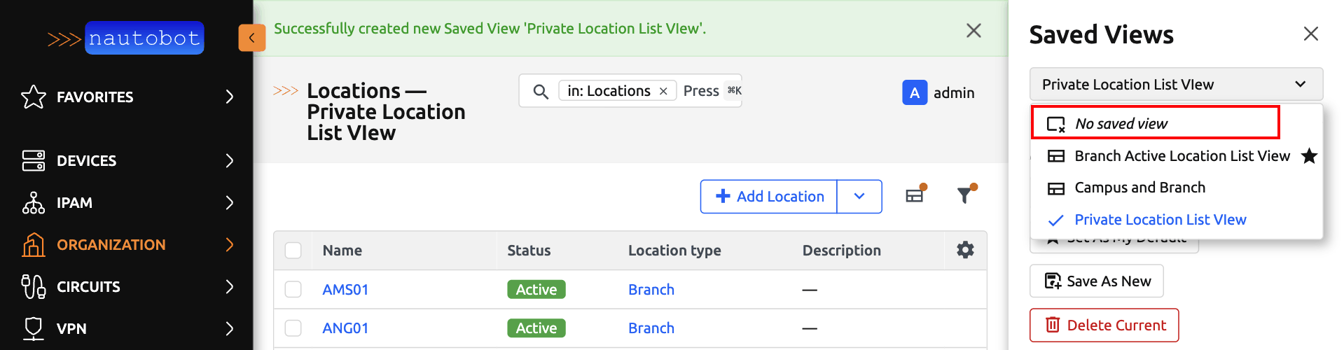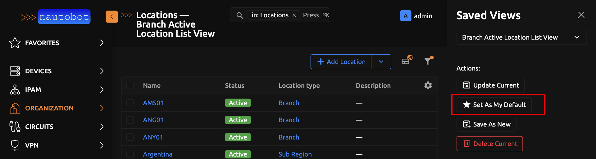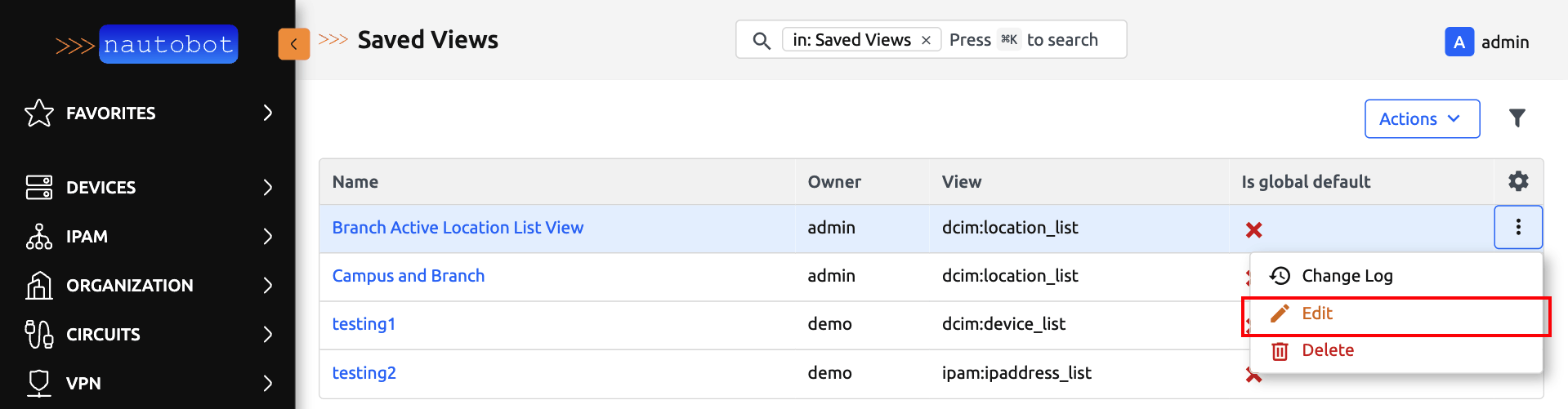 Below is a user guide on how to create, update, save and use Saved Views in Nautobot.